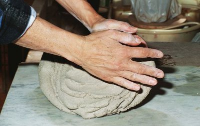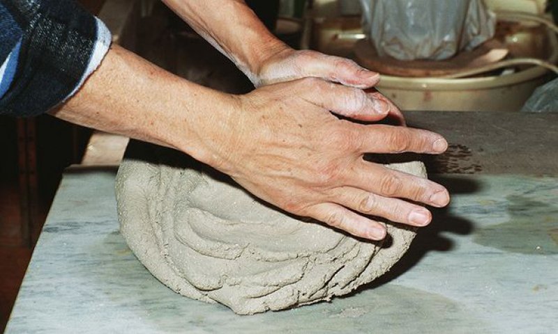 Seramik atölyesi katı çamur ( oyun hamuru kıvamında ) zemin tahta üzerinde ebeşuar kullanılarak ve bez gibi malzemelerle yapılmaktadır.